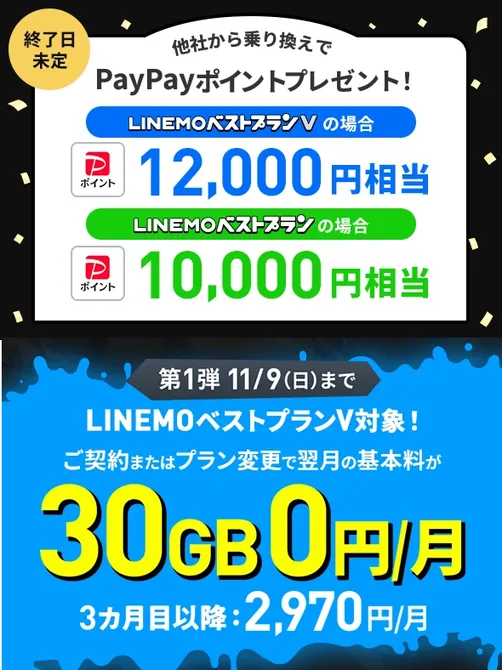 LINEMOの「ベストプラン」は、1段階目のデータ容量上限を超えると2段階目の料金に自動移行します。