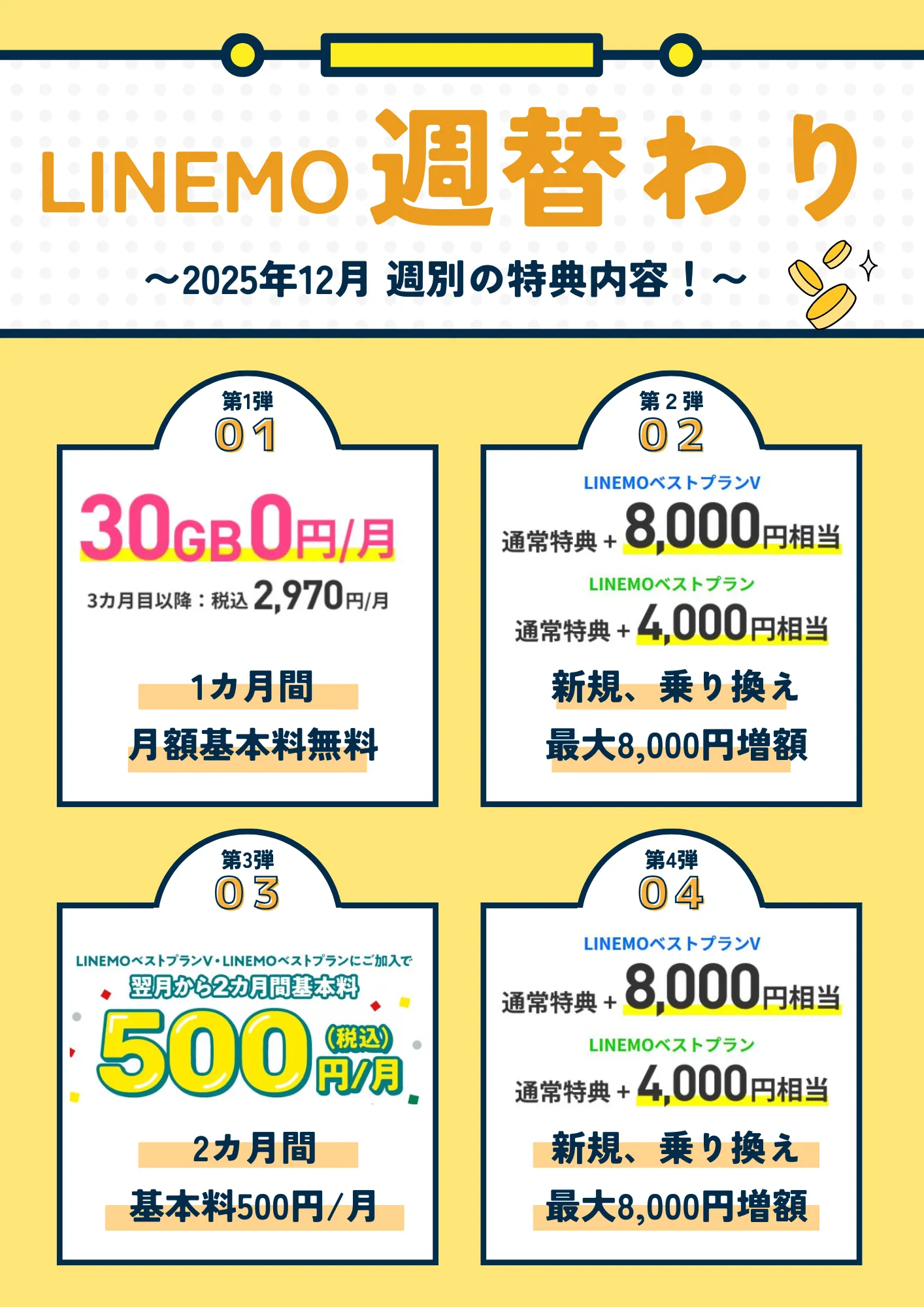 - 4 【2025年12月】LINEMOキャンペーン情報まとめ