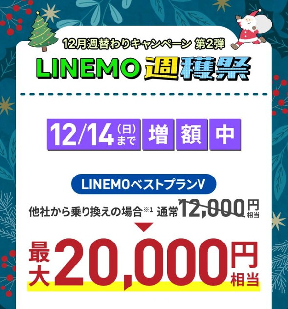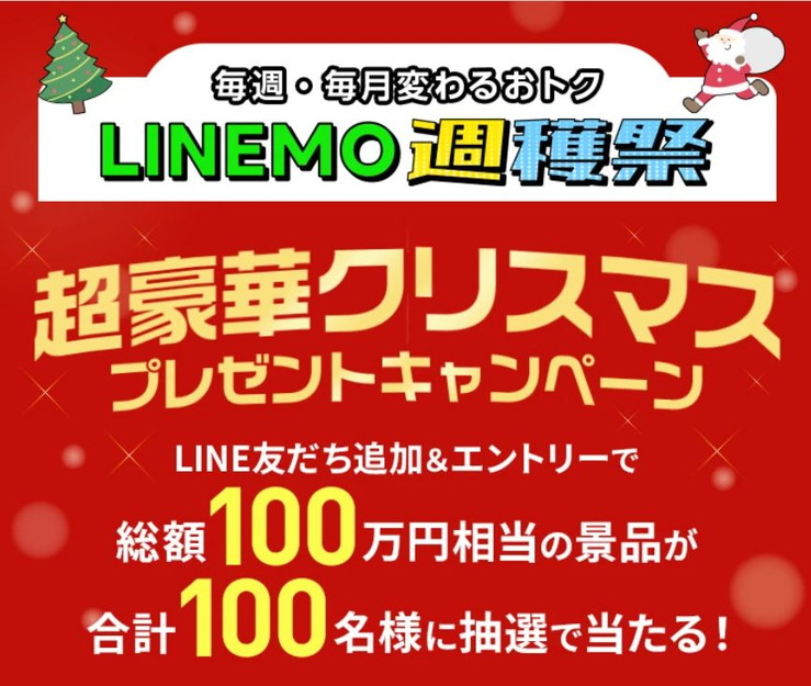 | 月替わりキャンペーン | LINEMO週穫祭 超豪華クリスマスプレゼントキャンペーン |